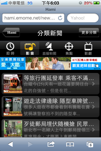 新聞:有分即時、影音、直播新聞、焦點、影劇,影音新聞讓不喜歡看文字的朋友,更方便閱覽新聞內容。